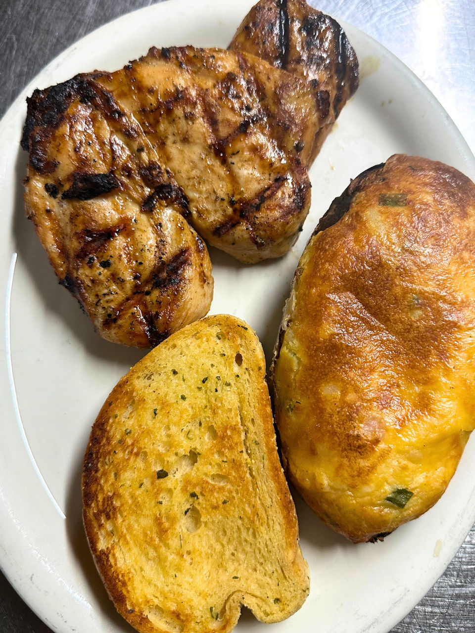 Ribeye, Shrimp Rahkee, Stuffed Potato, & Asparagus